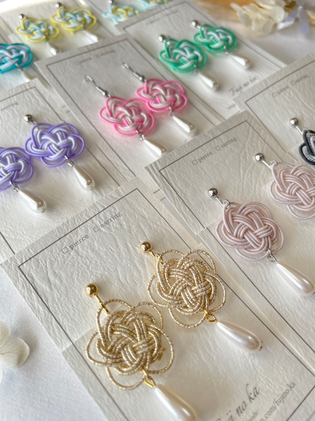 【日本の伝統工芸品である水引を使用したアクセサリーです。水引は和紙で出来ているためとても軽く優れた素材です★】