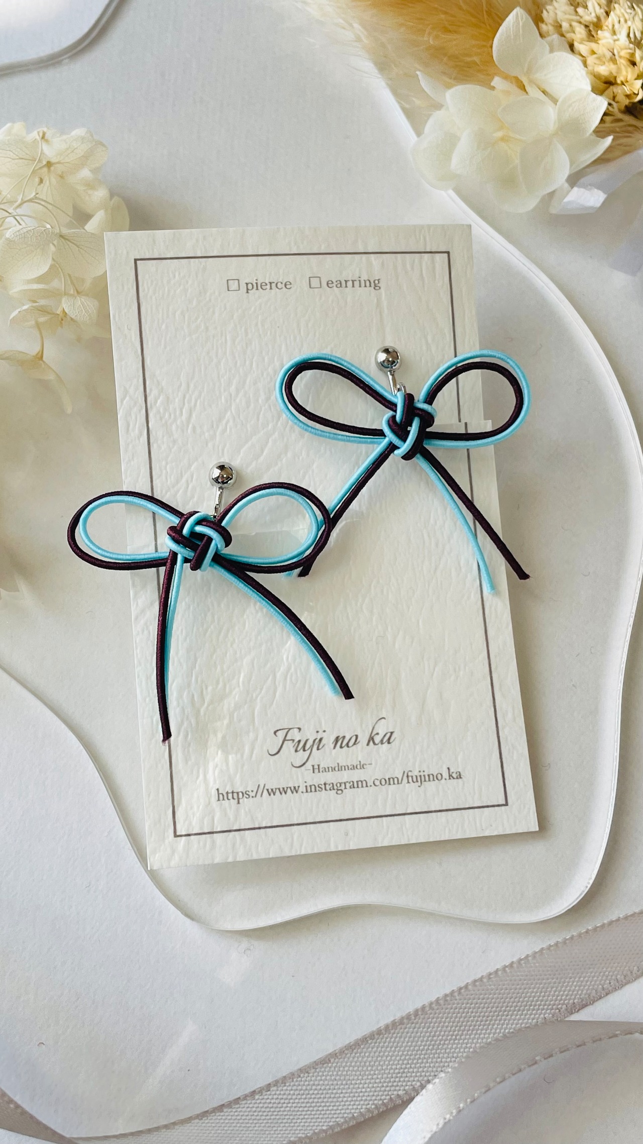 水引の伝統的な結び〈叶結び〉で作ったイヤリングです。