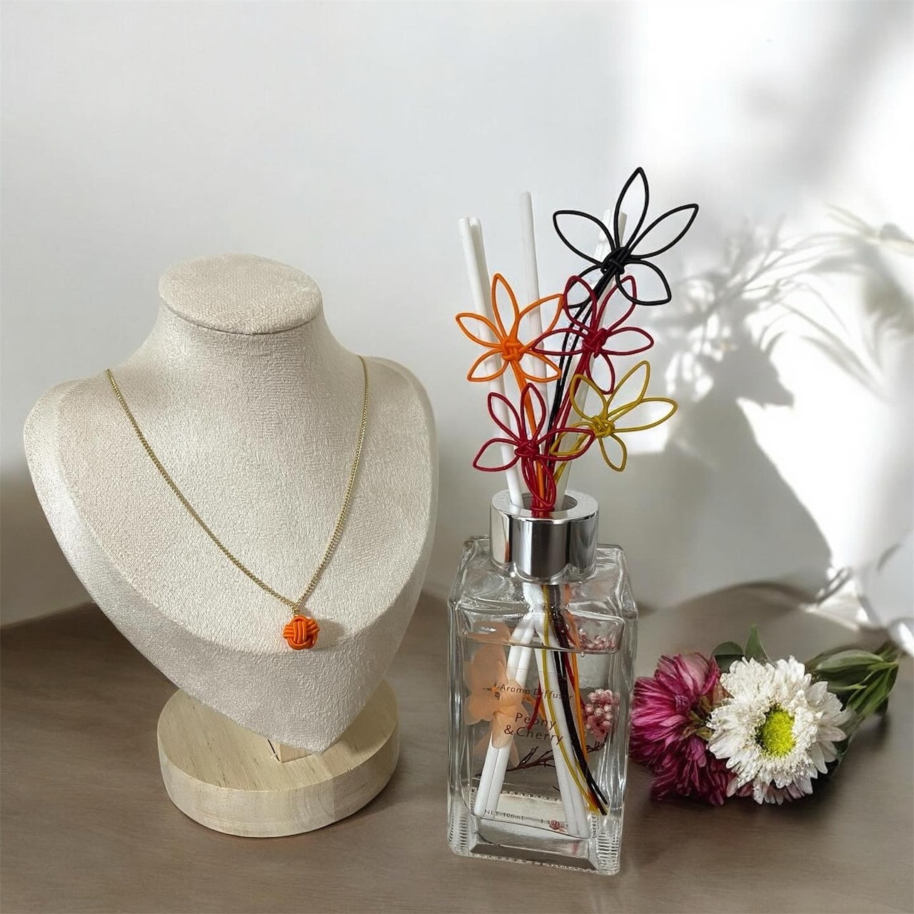 水引で作った非常に珍しいアロマリードスティックです。