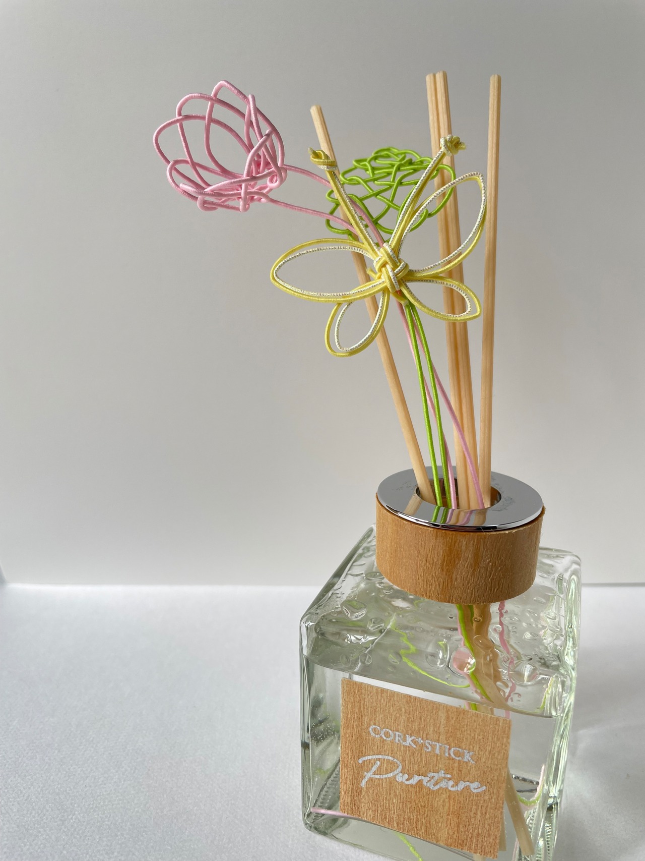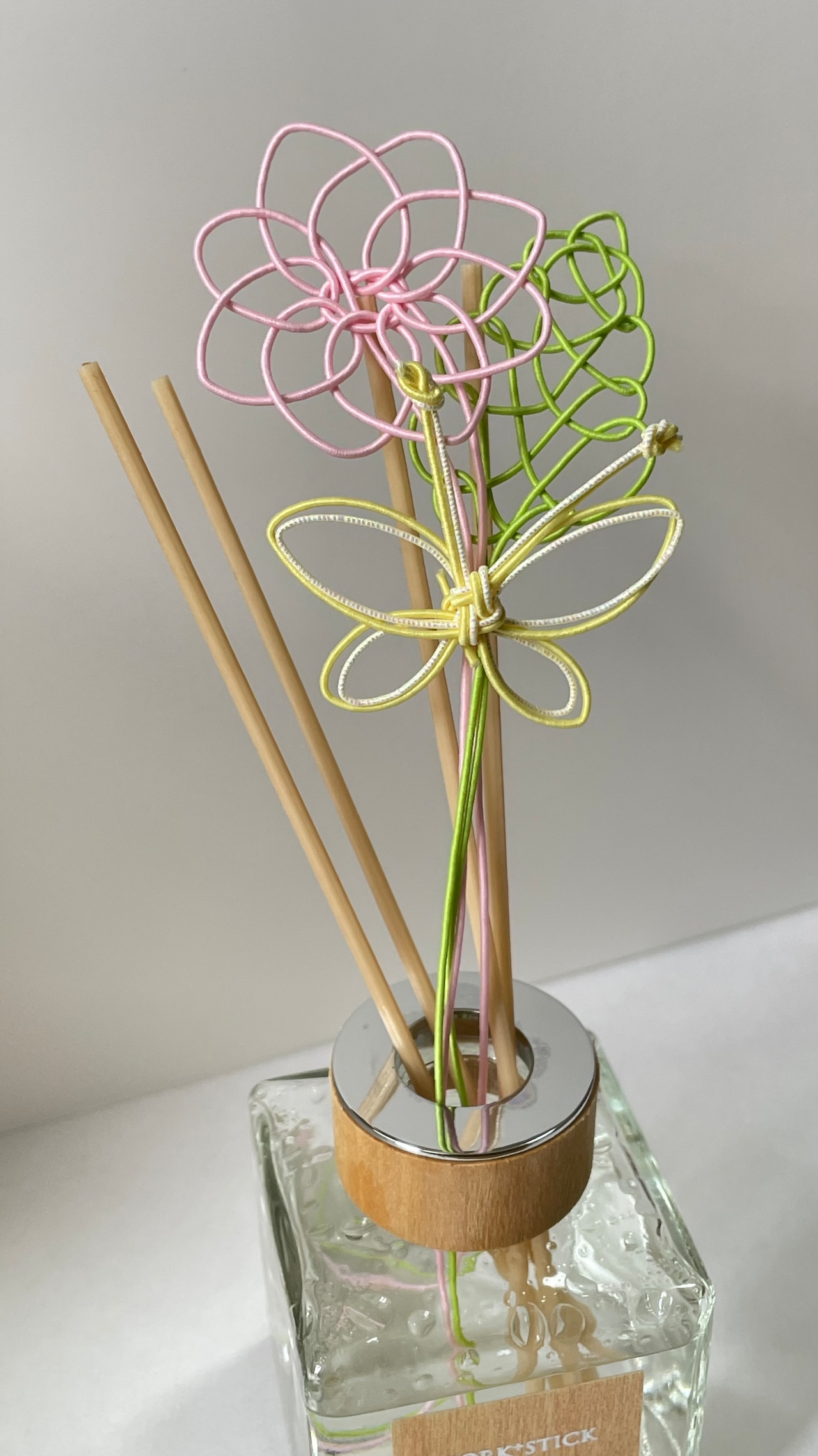 水引で作ったアロマリードスティックです。